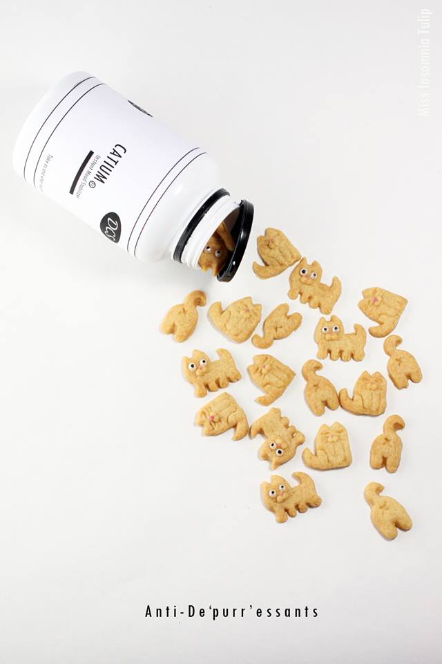 Tiny kitty Anti-de'purr'essant Butter Shortbread Cookies. Take as and when needed ;)